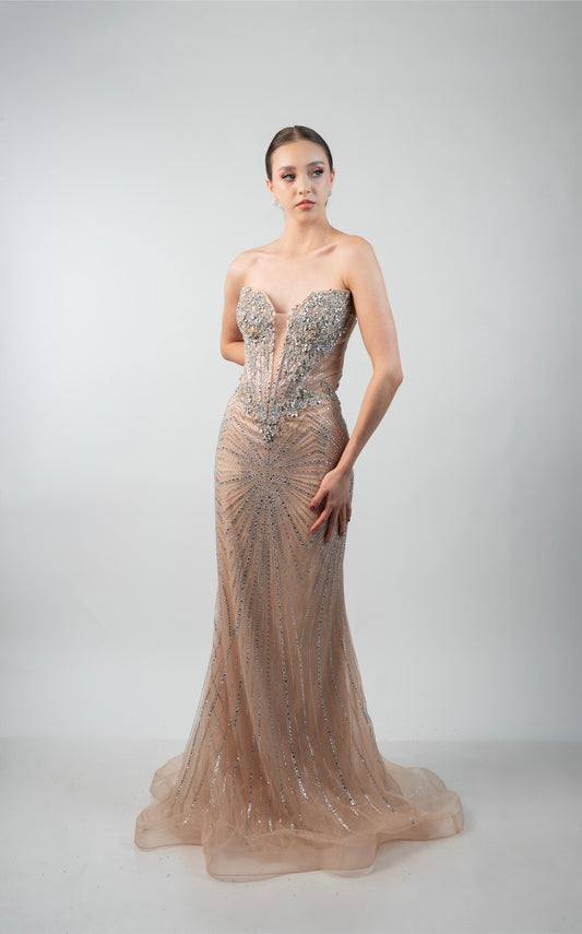 Nude Straple Perlas Y Diseño Plata En Corset