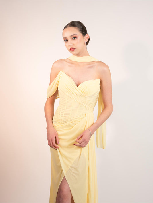 Amarillo Straple Manga Caida Corrugado Suelto