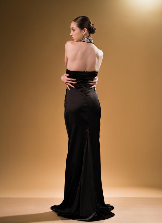 Vestido Negro Cuello Halter Con Brillos