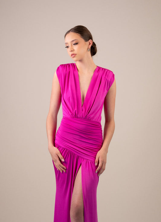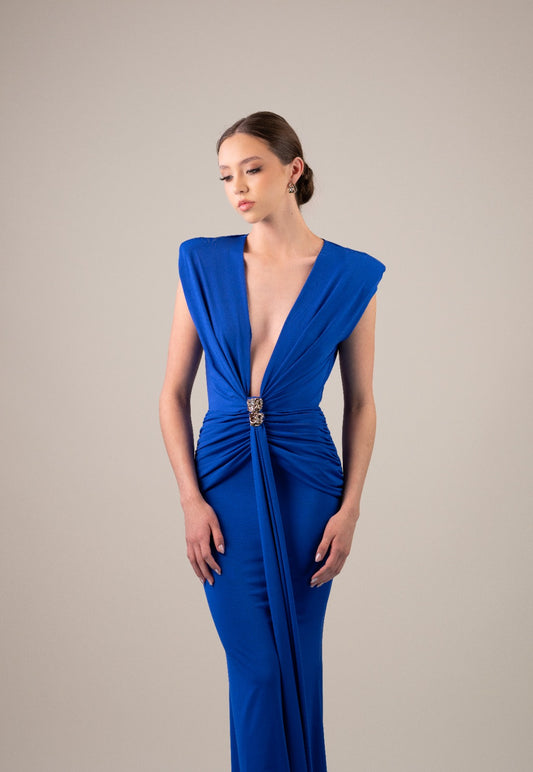 Azul Rey Escote En Pecho Y Detalle Dorado En Cintura