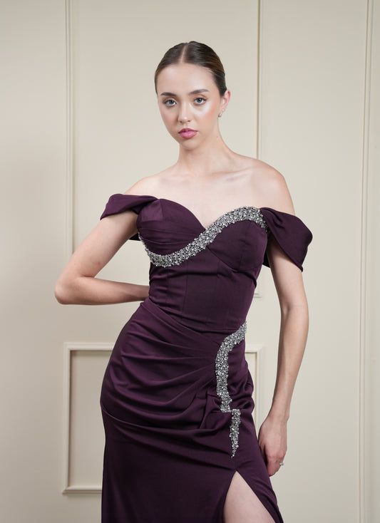 Vestido Morado con Detalles Plateados Midi