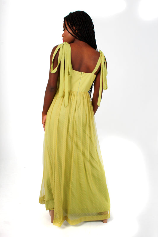 Vestido Tul con Transparencia Moño en Hombros
