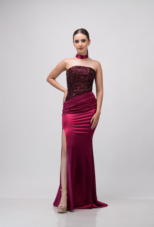 Vestido Straple Lentejuela En Pecho Falda Lisa