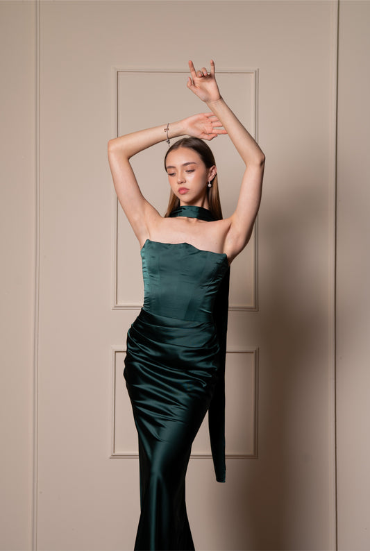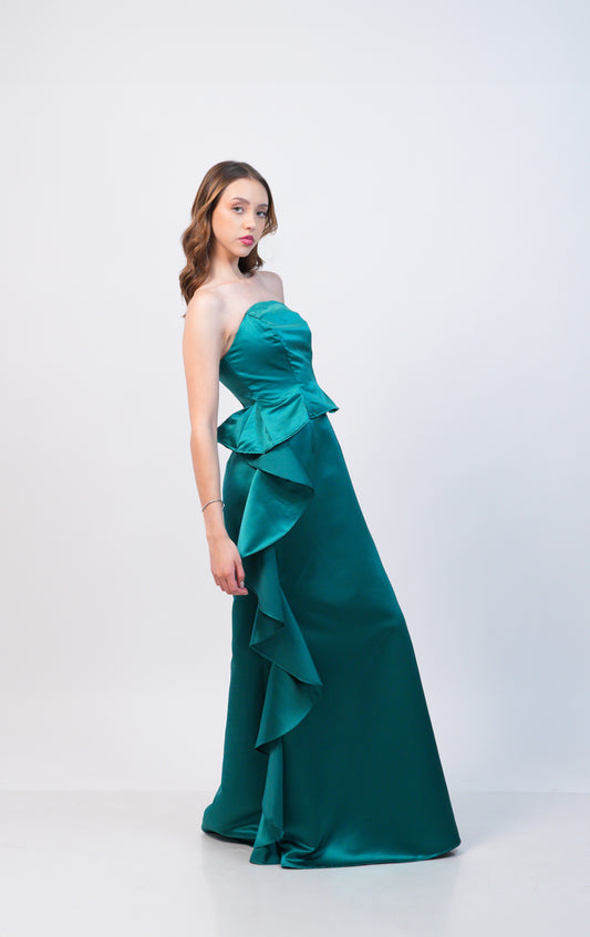 Vestido Verde Esmeralda Corset y Olan en Pierna