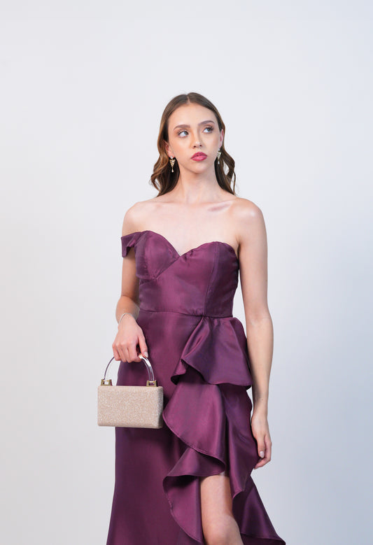 Vestido Uva una Manga Caida Plizado