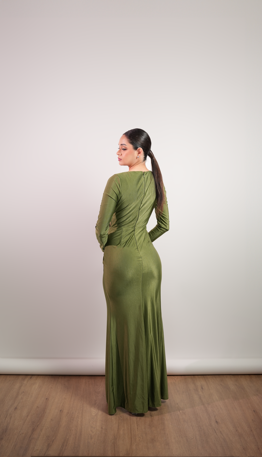 Vestido Verde Olivo Nudos Corte A