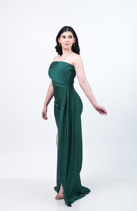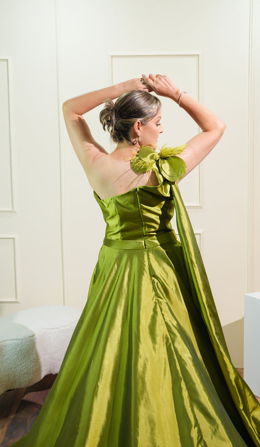 Vestido Verde Manga a un Lado y Banda