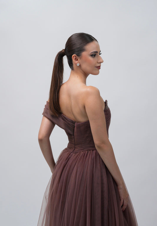 Vestido Chocolate Straple Liso Banda Atras