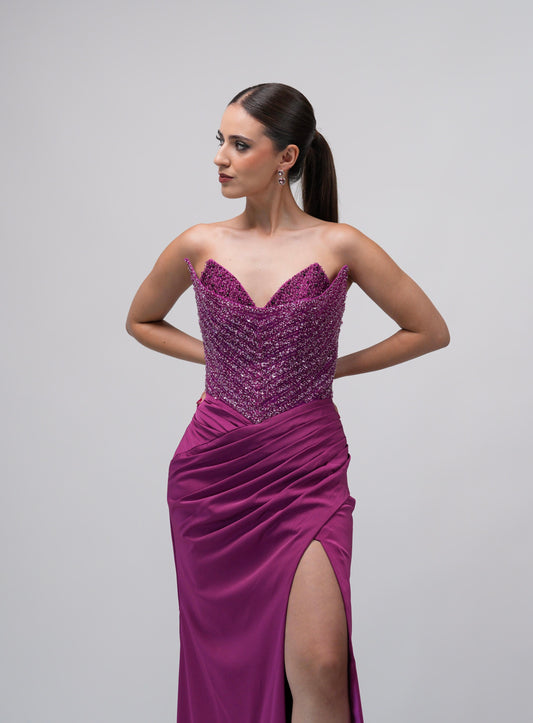 Vestido Buganvilla Straple Piedras en Corset