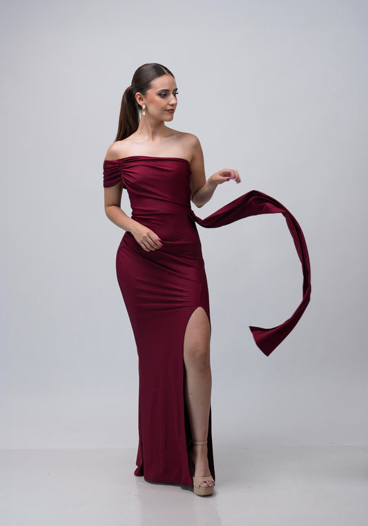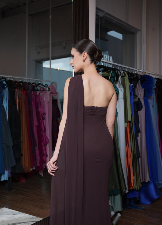 Vestido Corte Sirena Con Capa Y Un Tirante