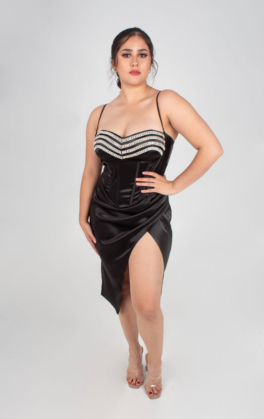 Vestido Corte Princesa Straple Pedreria En Abdomen