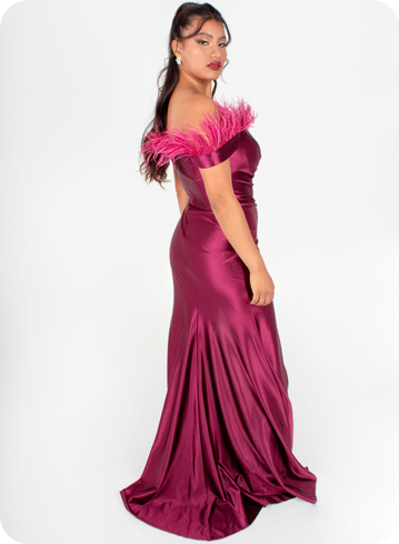 Vestido Corte Sirena con Tul Abajo y Plumas en Mangas Caidas