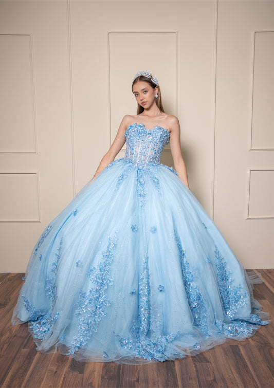 Vestido de XV Años Vestido Azul Cielo Lentejuela Tornasol EstraplePrecio habitual $ 19,520.00 MXNPrecio habitualPrecio unitario / por-
