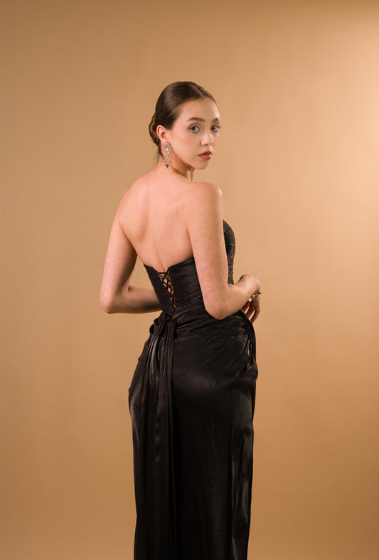 Vestido Azul Cobalto Corte Princesa Straple Manga Caida