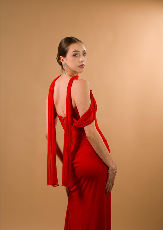 Coral Straple Pegado Abdomen Suelto En Falda Con Estola