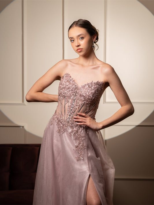 Vestido Corte Princesa Straple Pedreria En Abdomen
