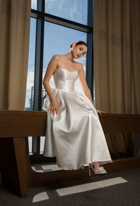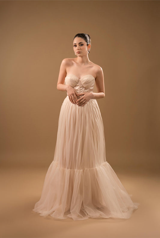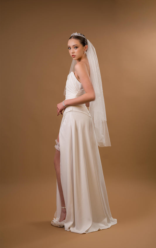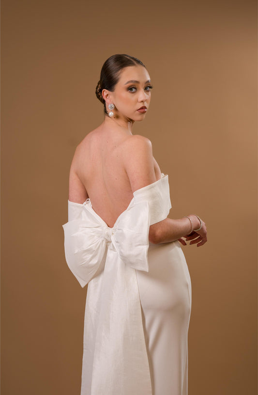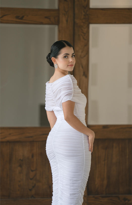 Vestido Blanco Straple Corset con Estola