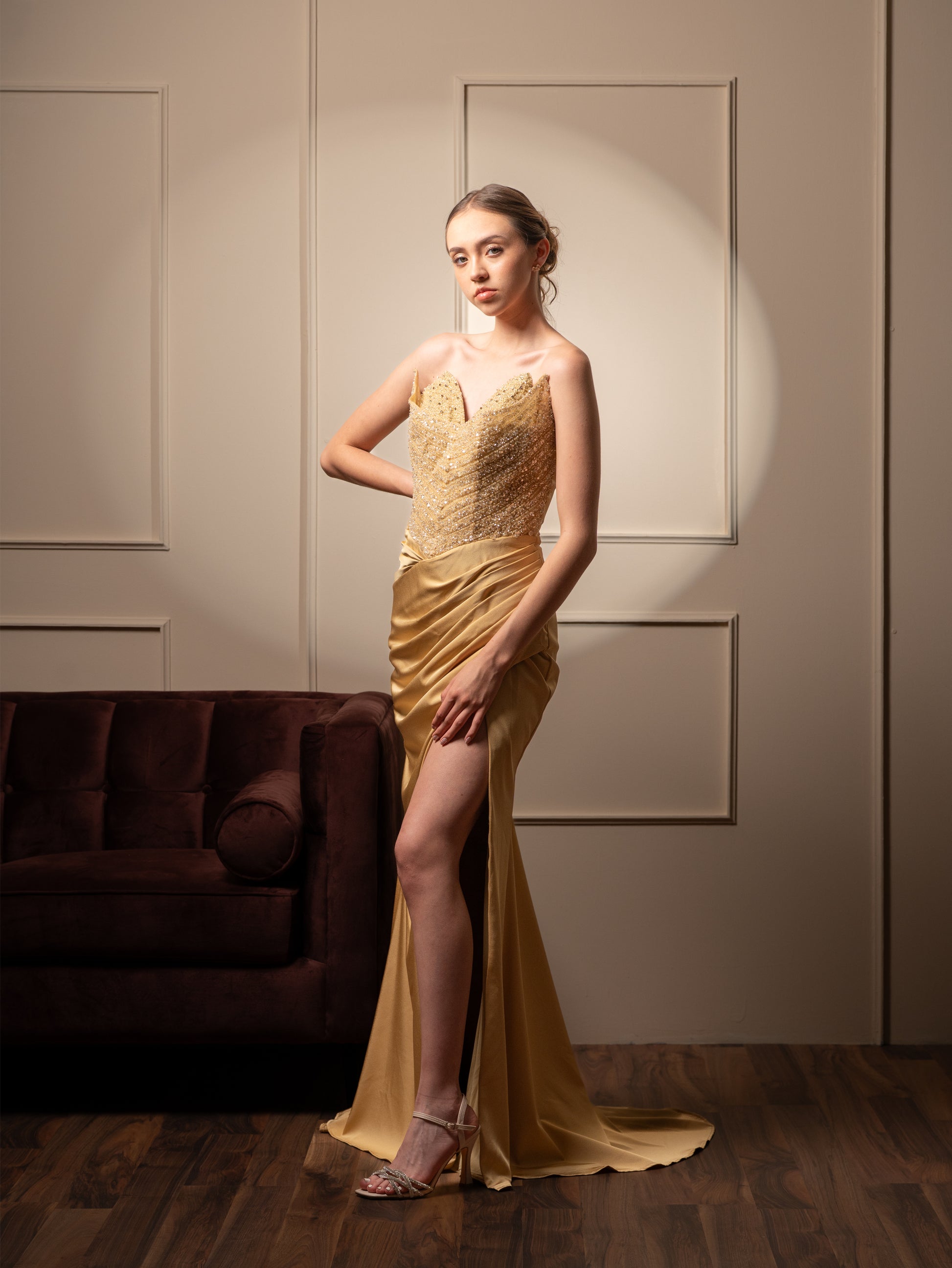 Vestido Amarillo Pastel Straple Piedras En Corset