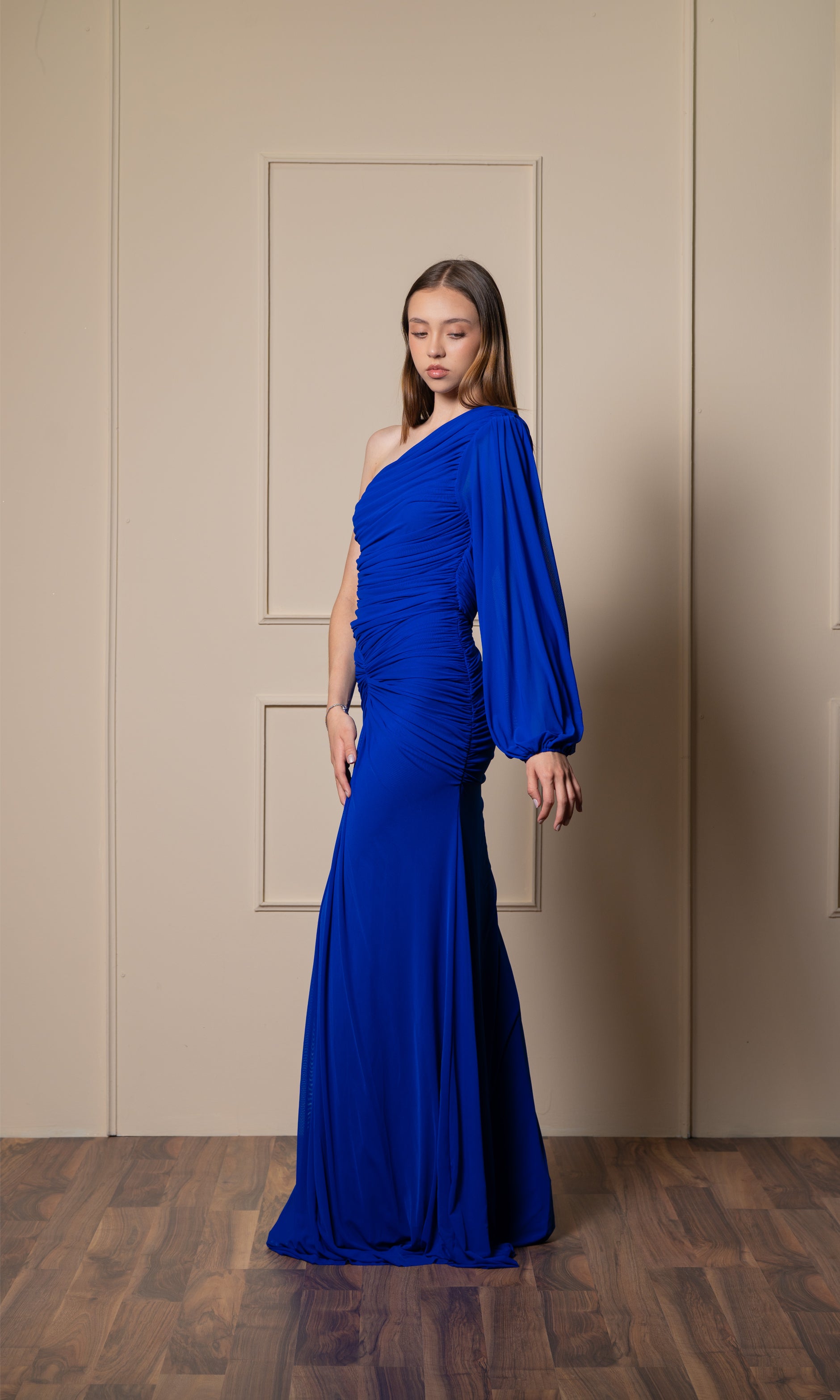 Vestido Azul Rey Corrugado Una Manga
