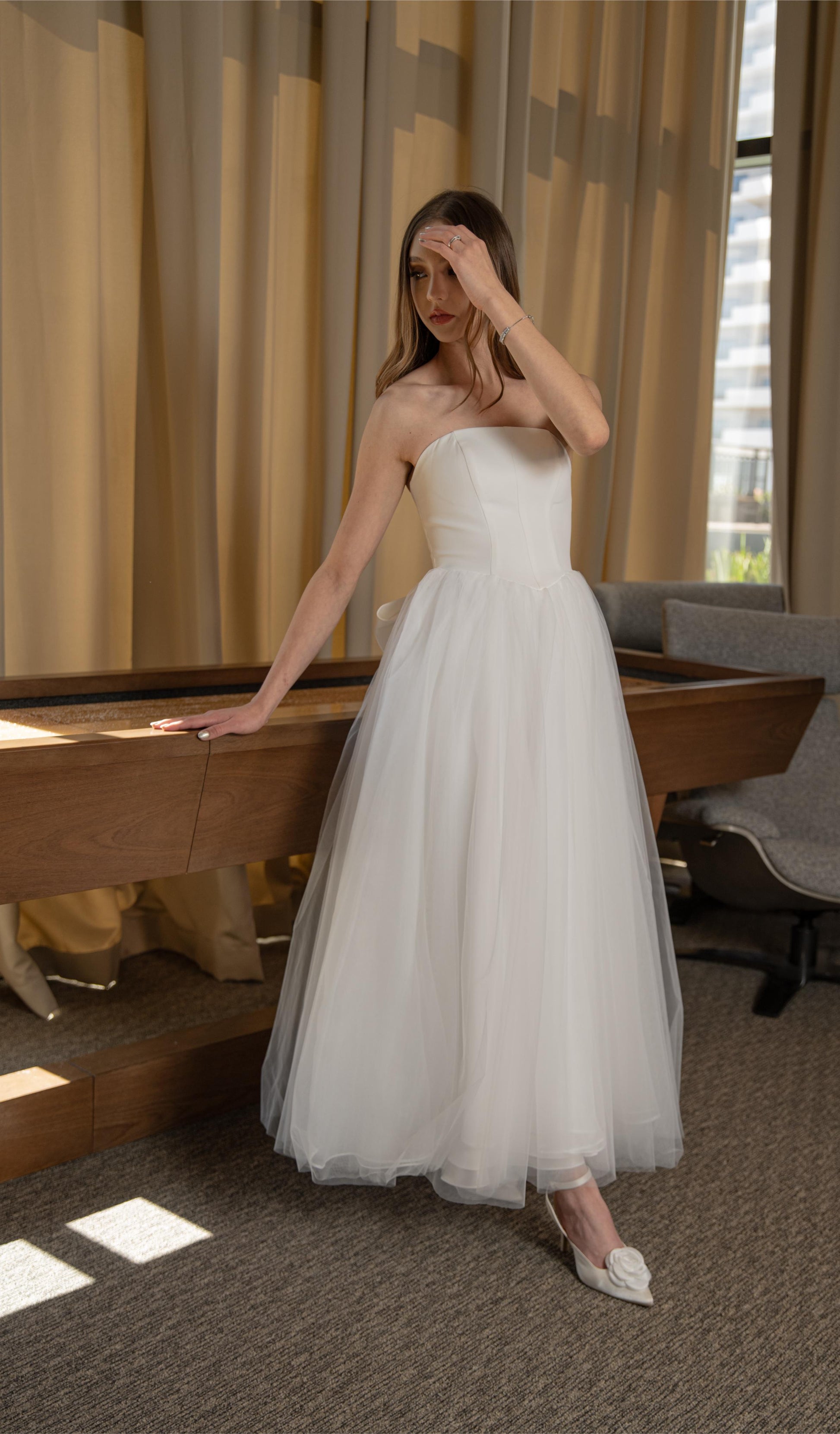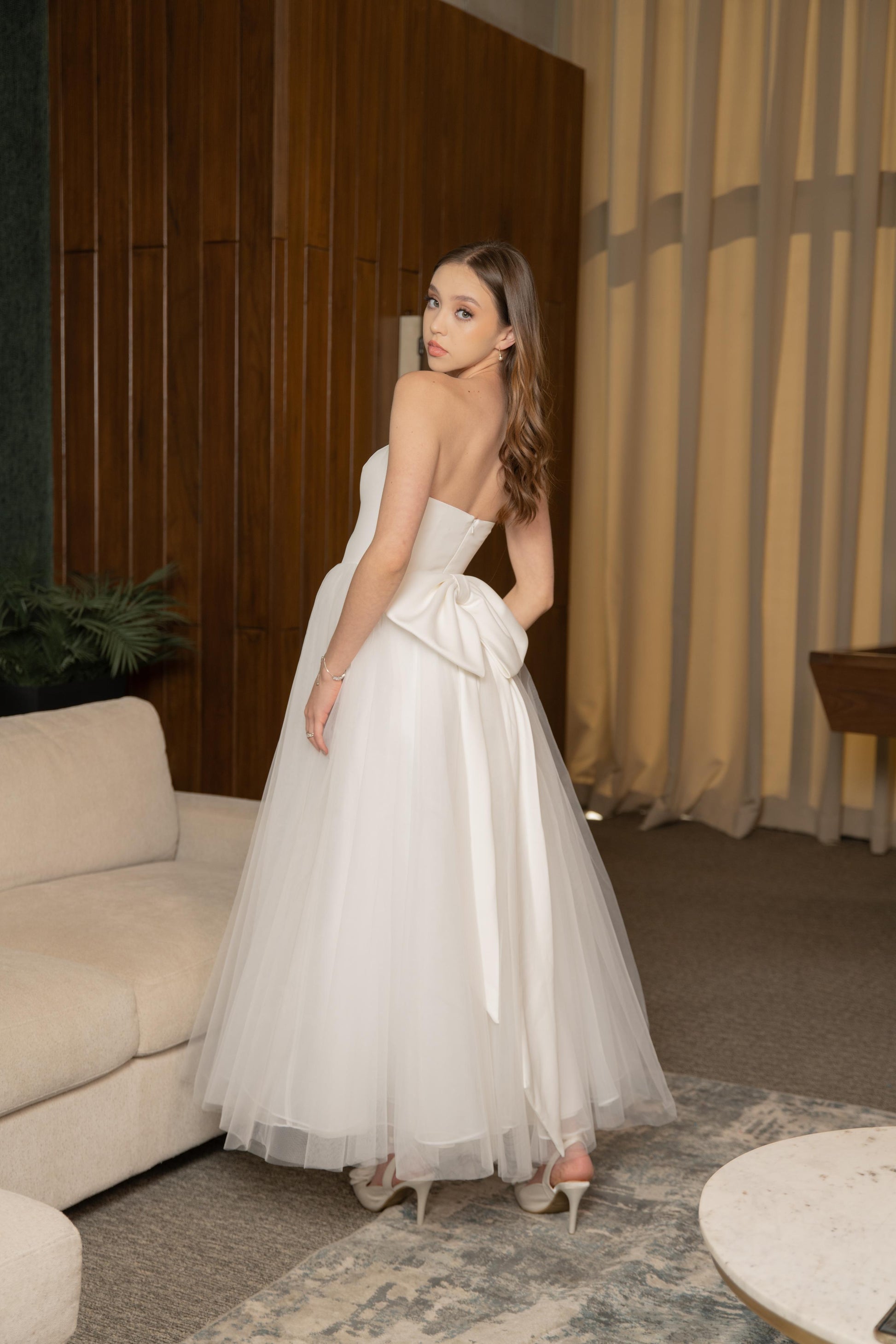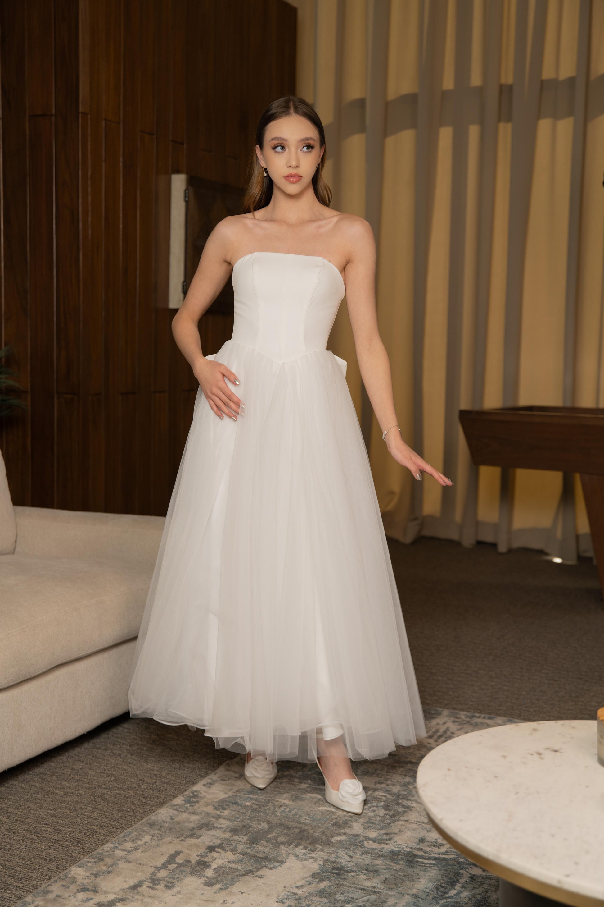 Vestido Blanco Midi Corte Moño Atras
