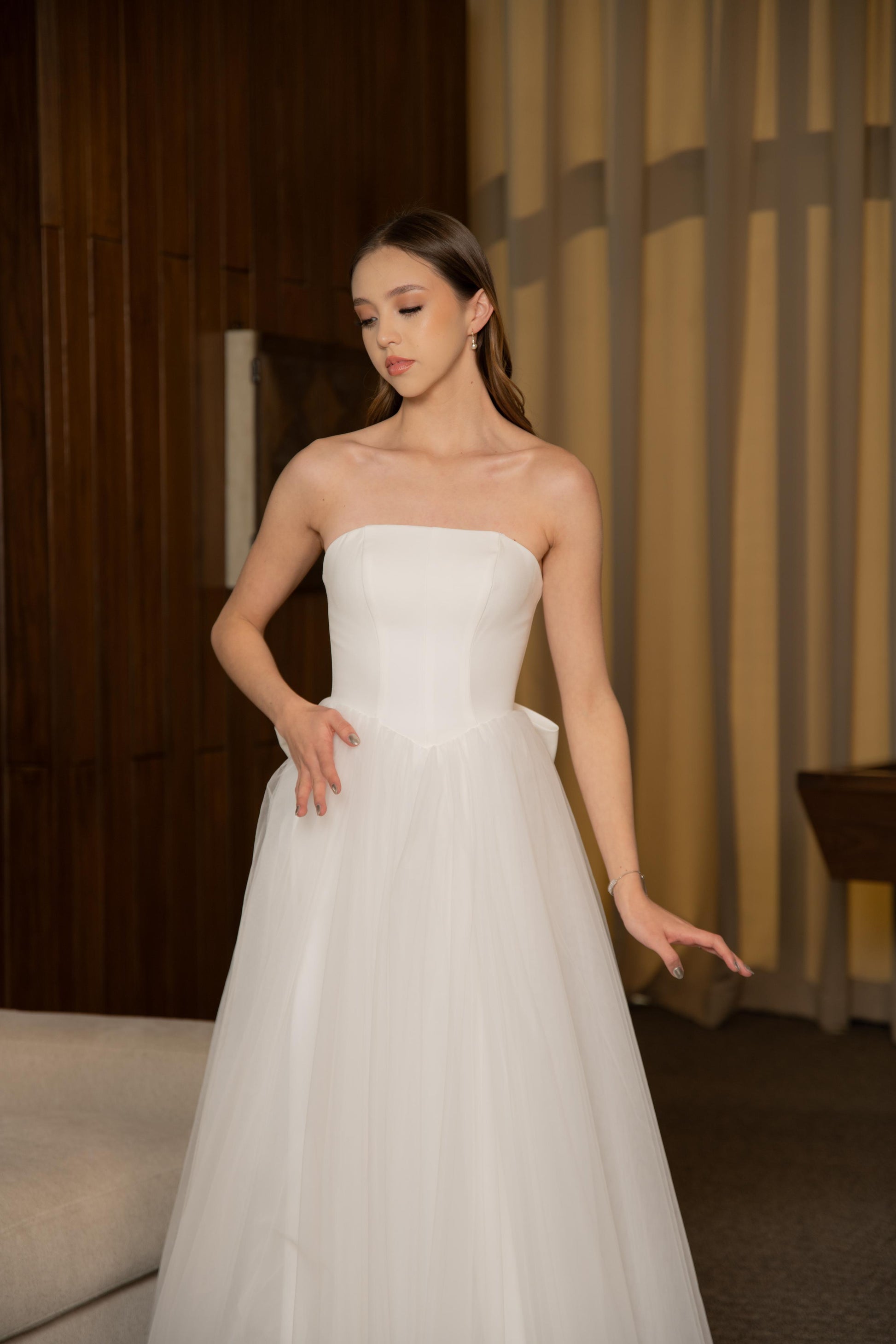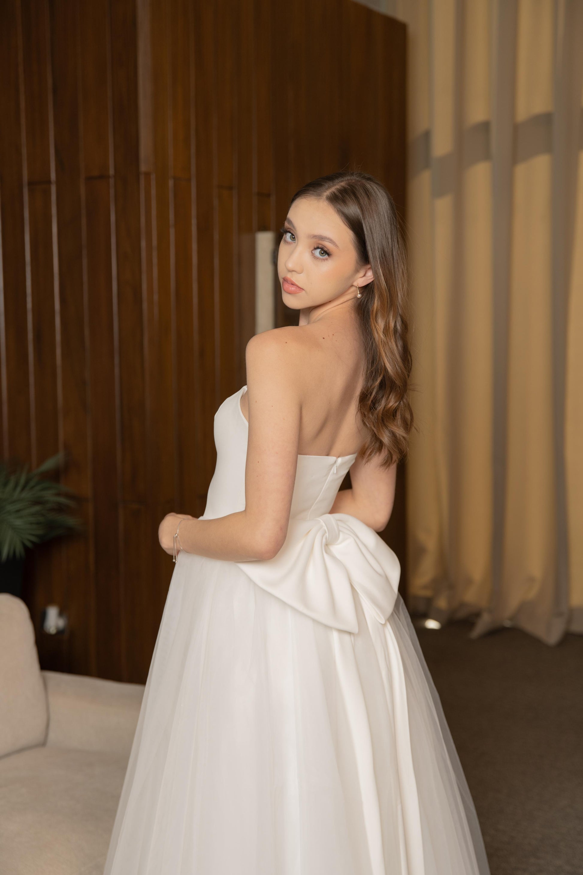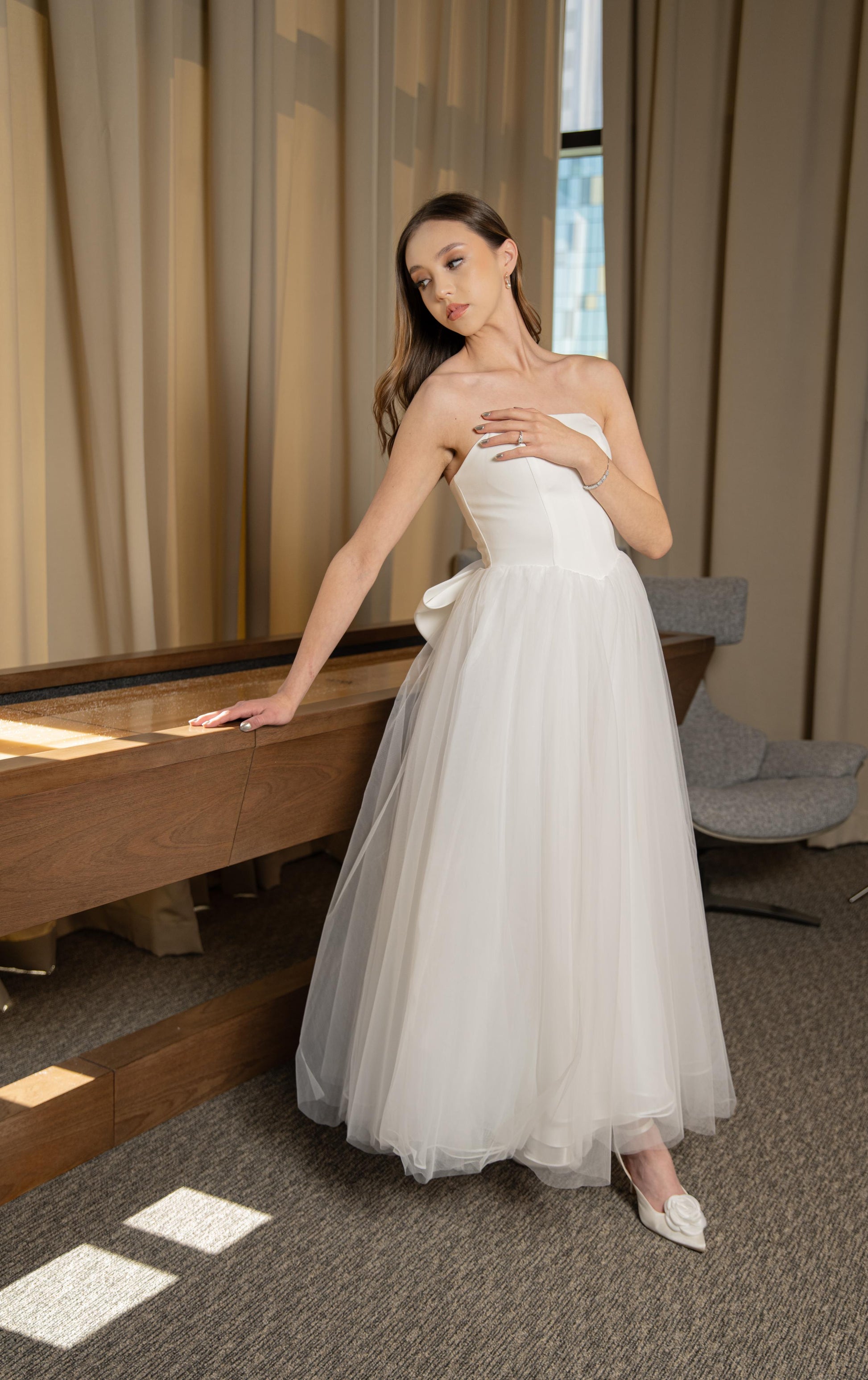 Vestido Blanco Midi Corte Moño Atras