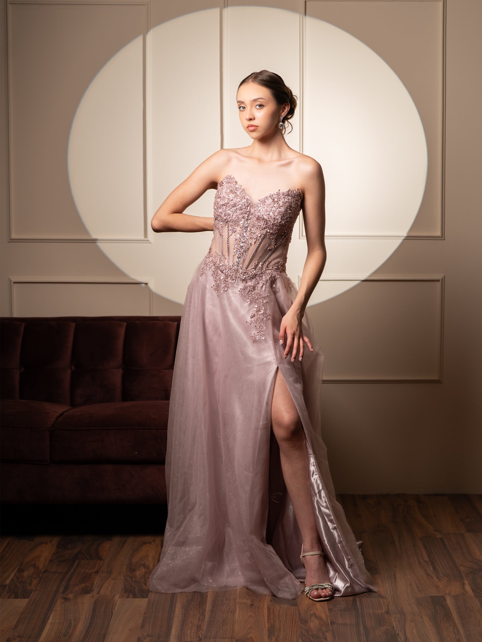 Vestido Corte Princesa Straple Pedreria En Abdomen