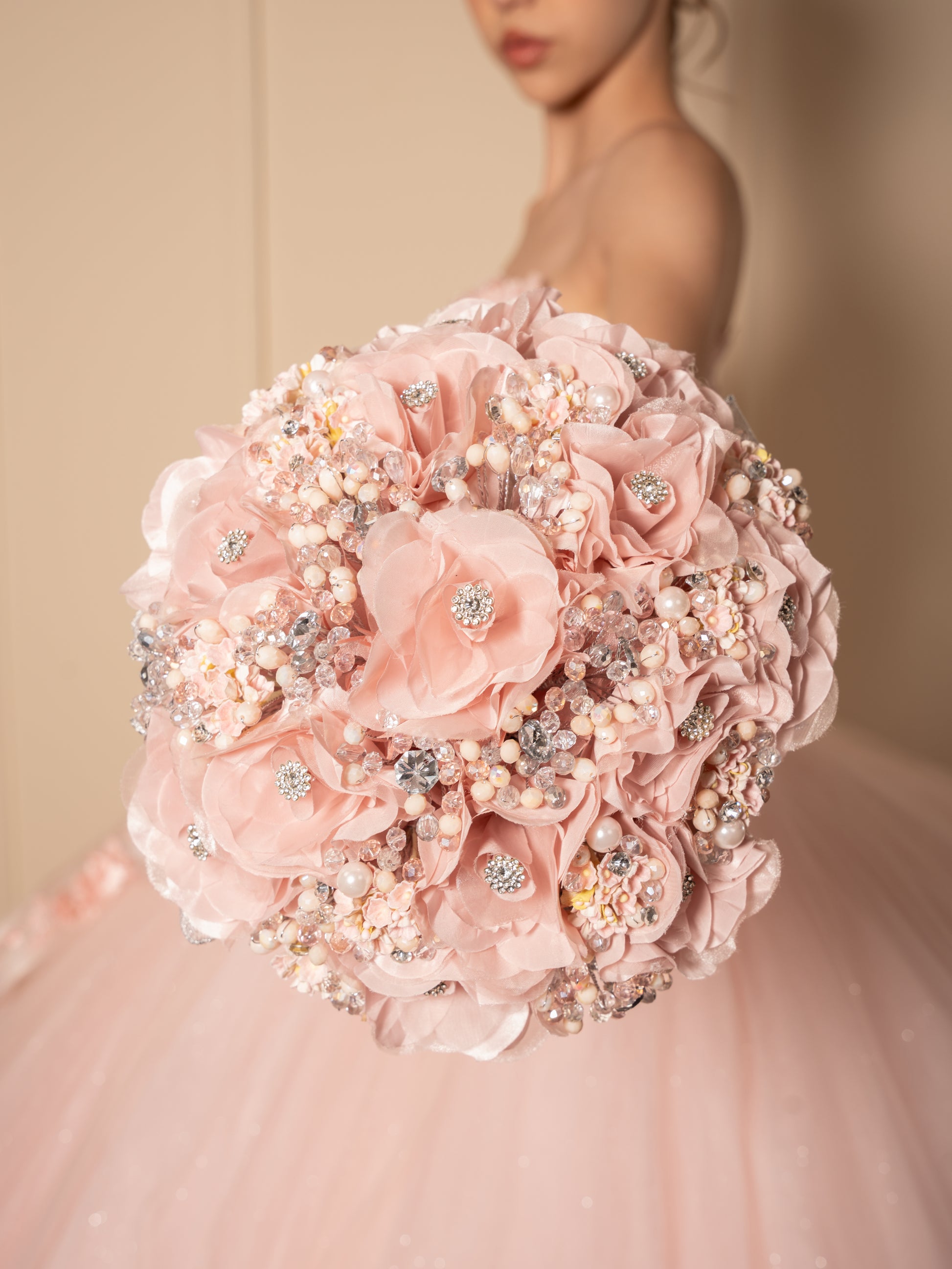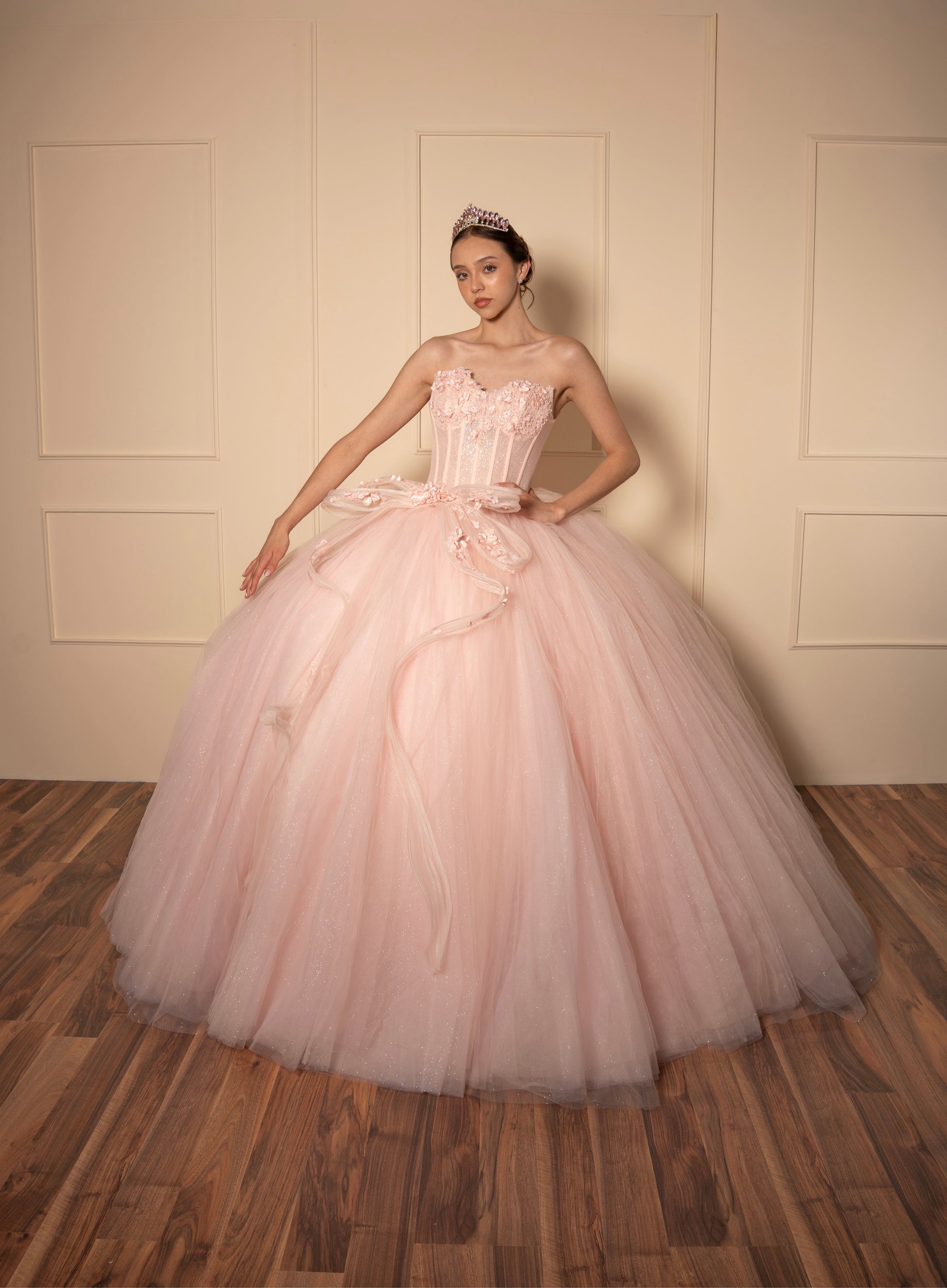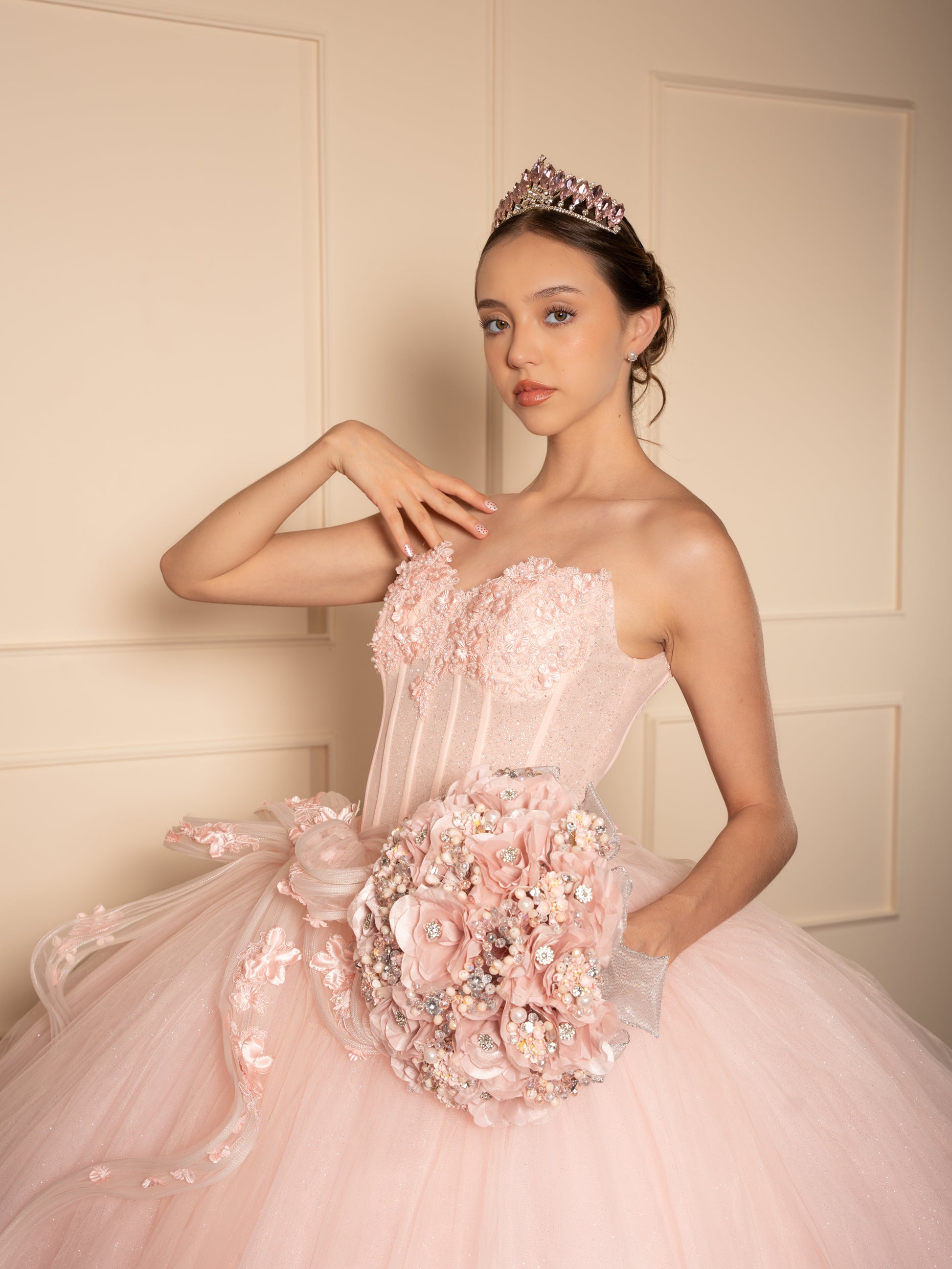 Vestido de XV Años Rosa Baby Moño en Falda y Gargantilla