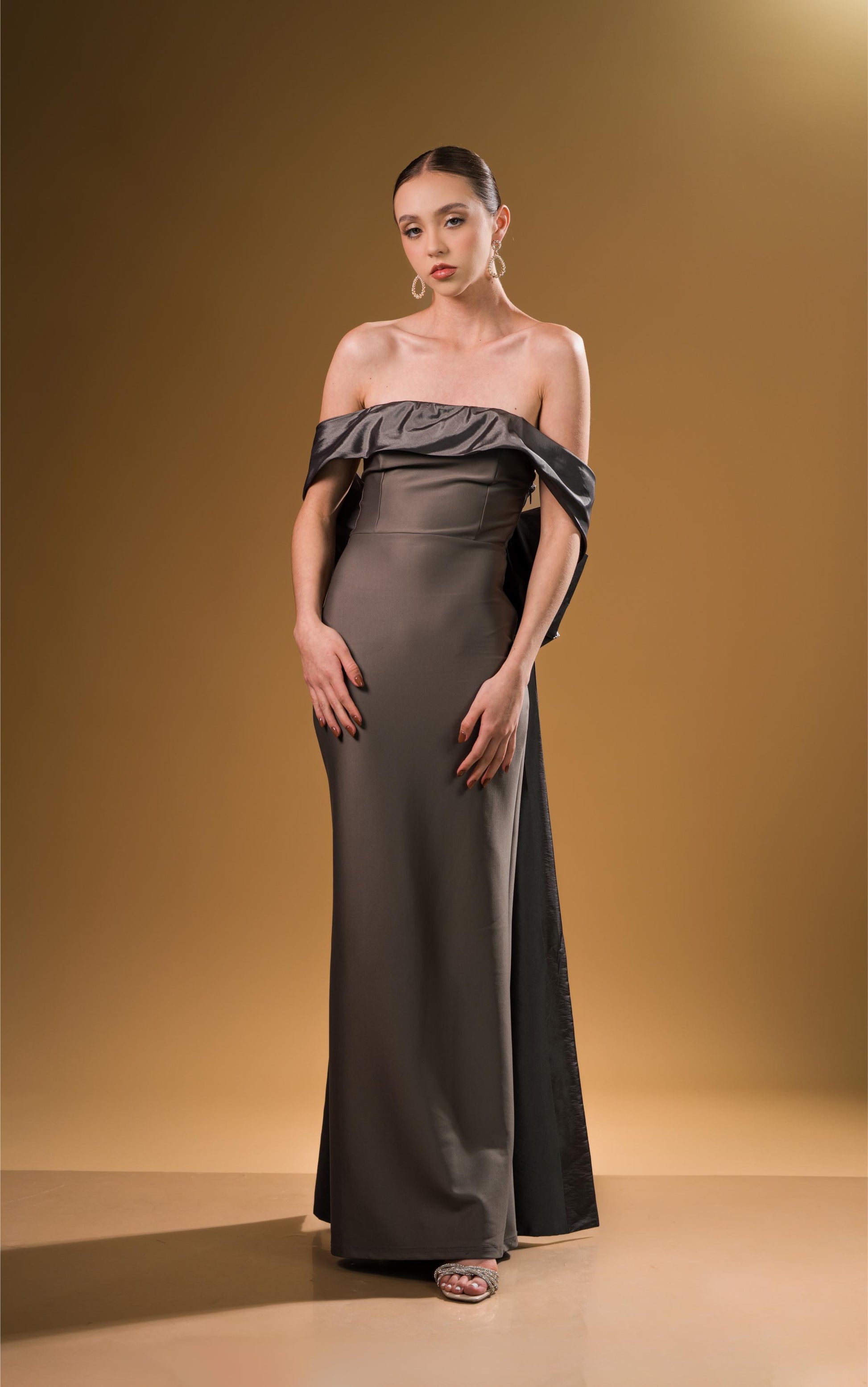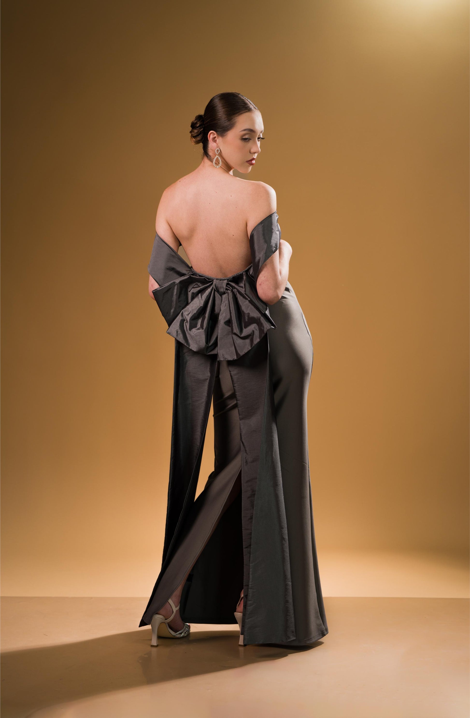 Vestido Gris Manga Campesina Moño Atras