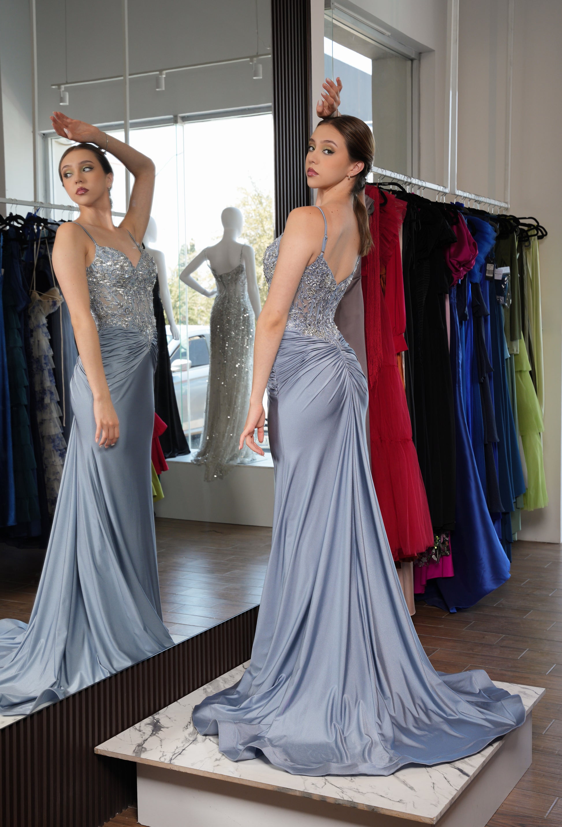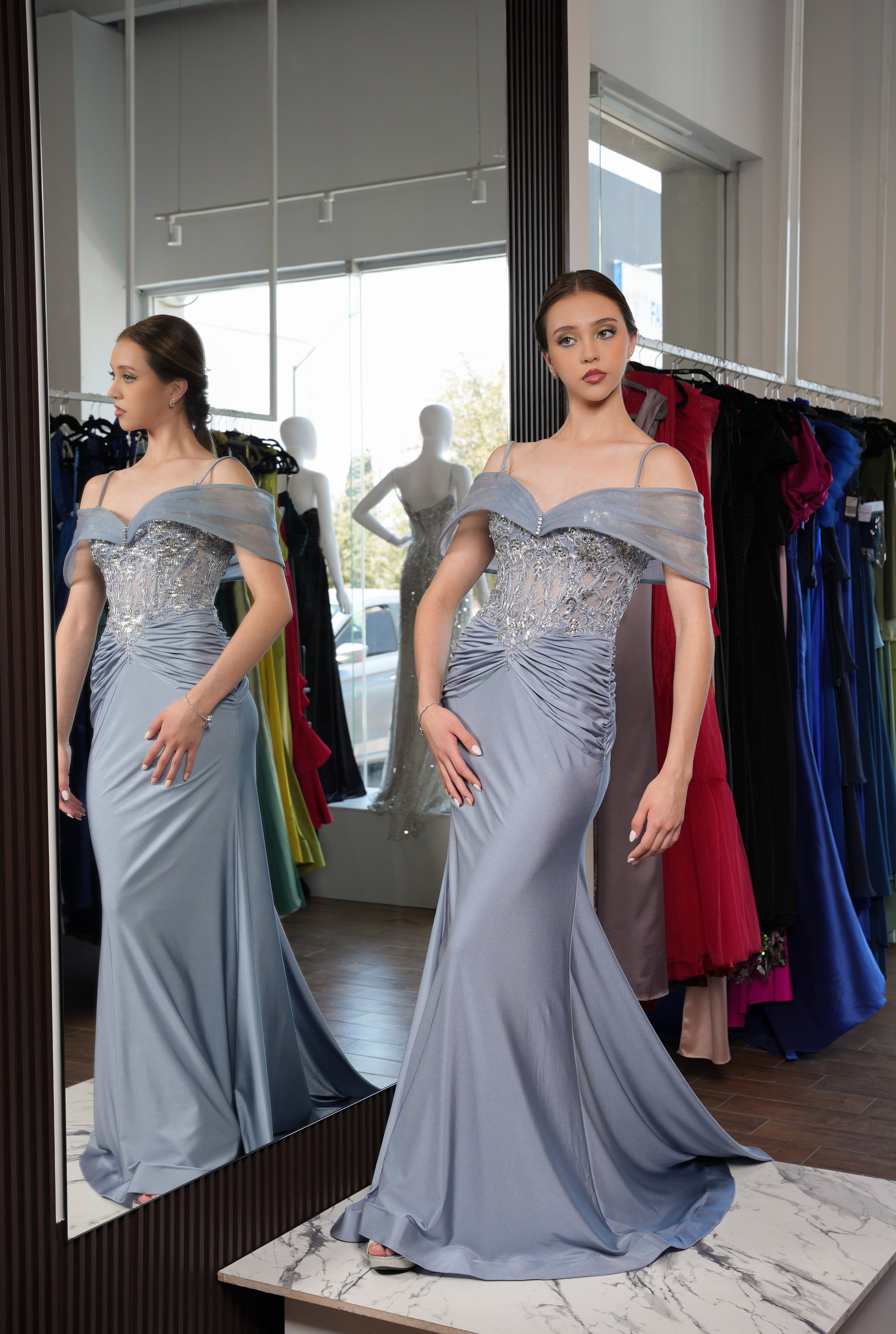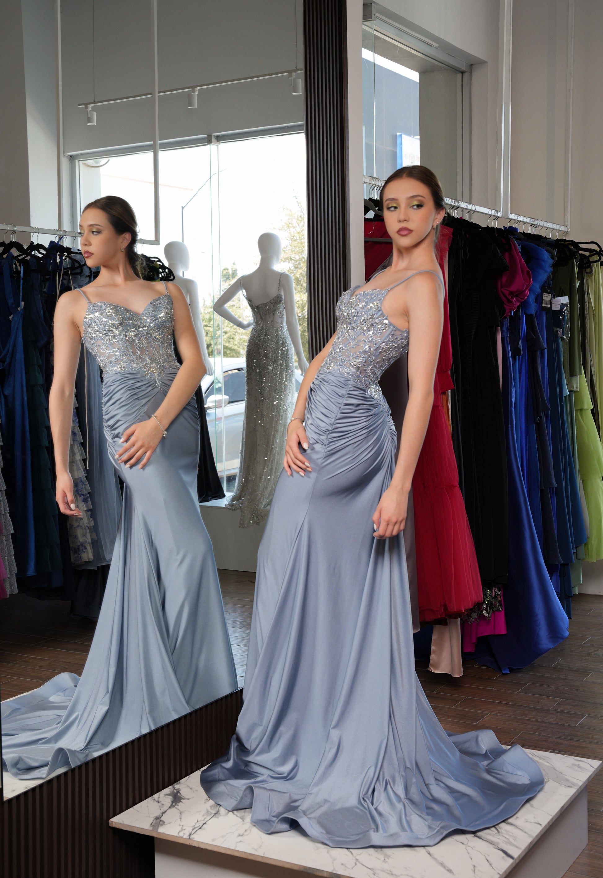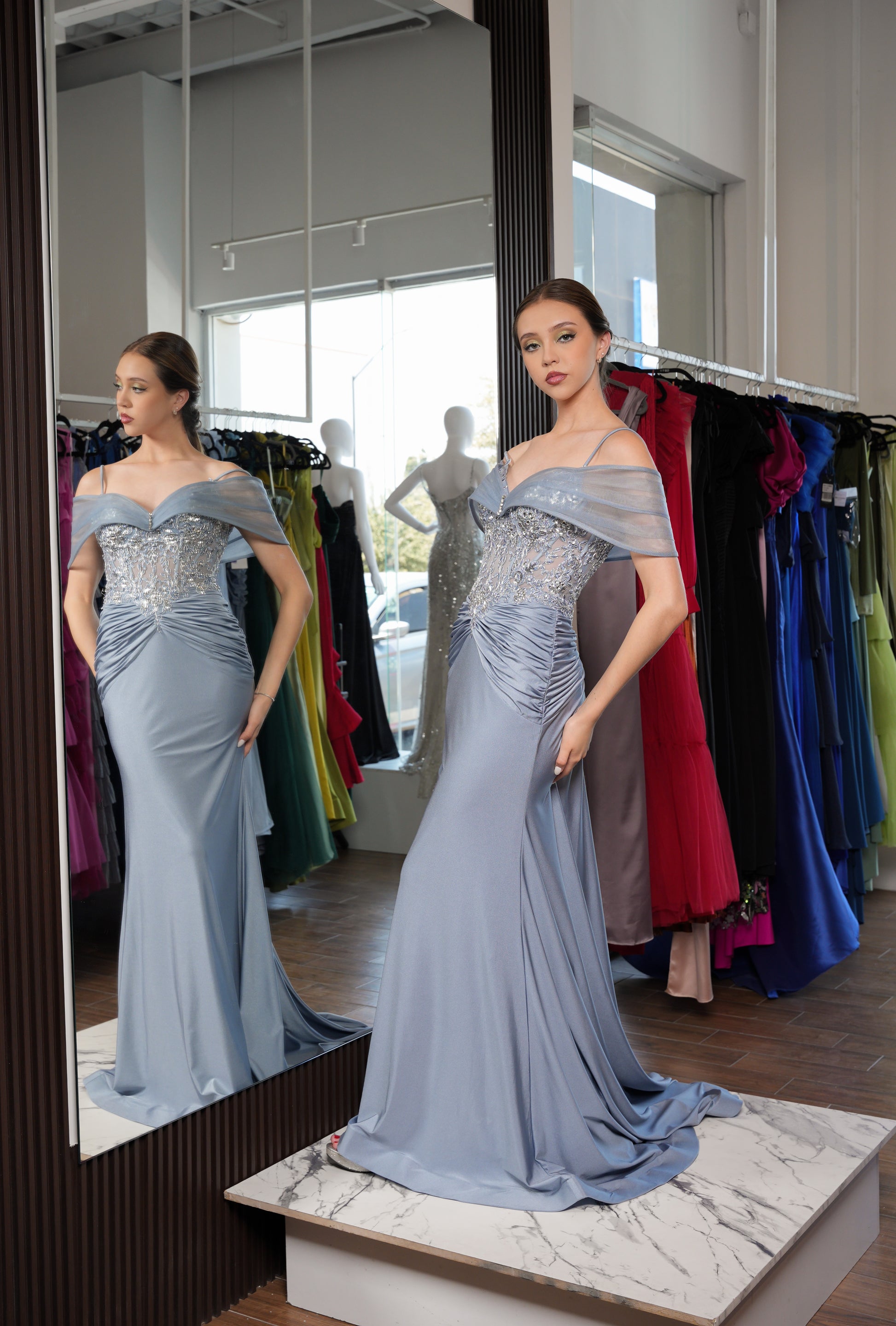 Vestido Smoky Blue Manga Con Tirante Detalle En Abdomen