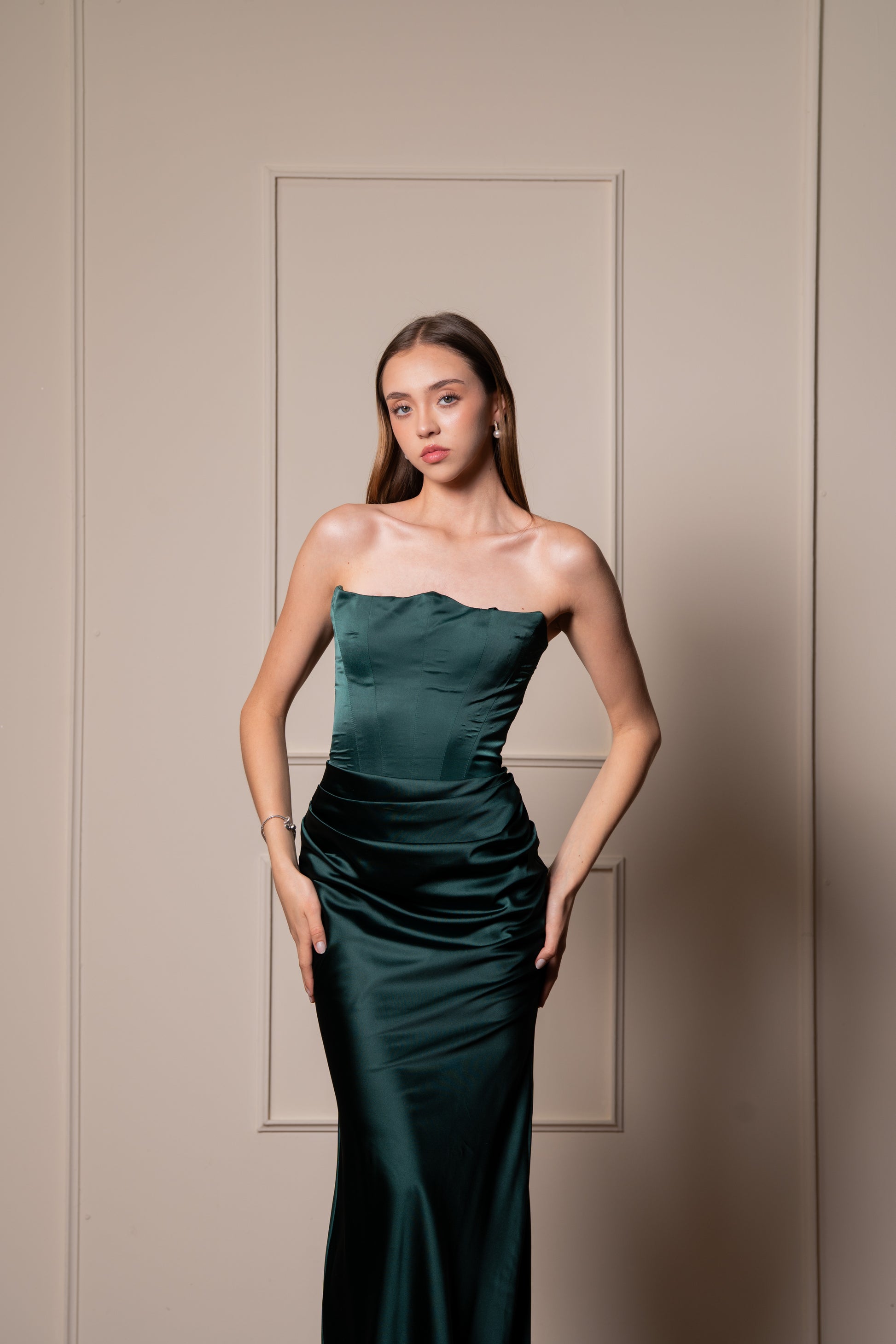 Vestido Verde Esmeralda Straple De Corset Con Estola
