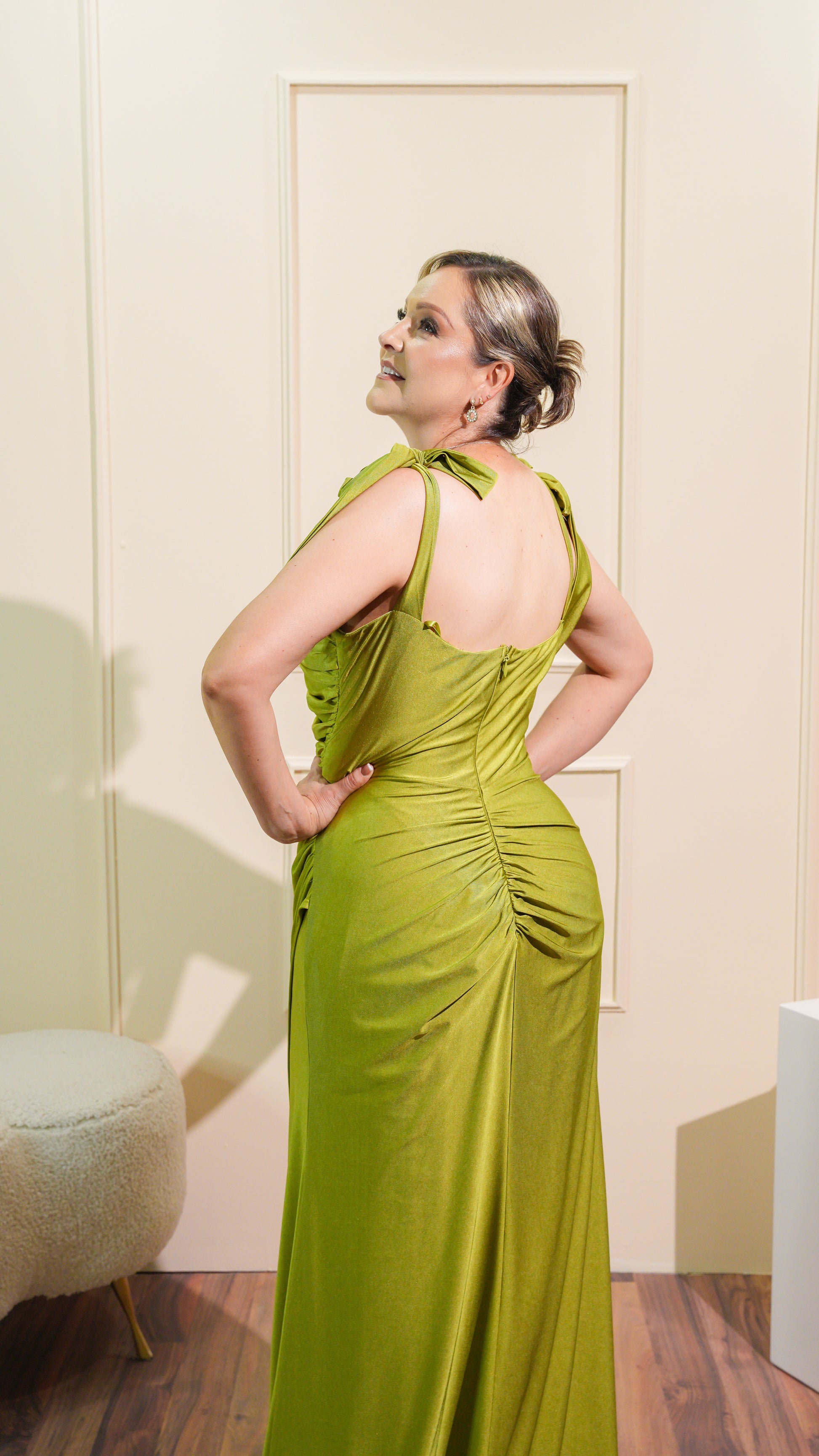 Vestido Verde Limon Straple Moños Caidos