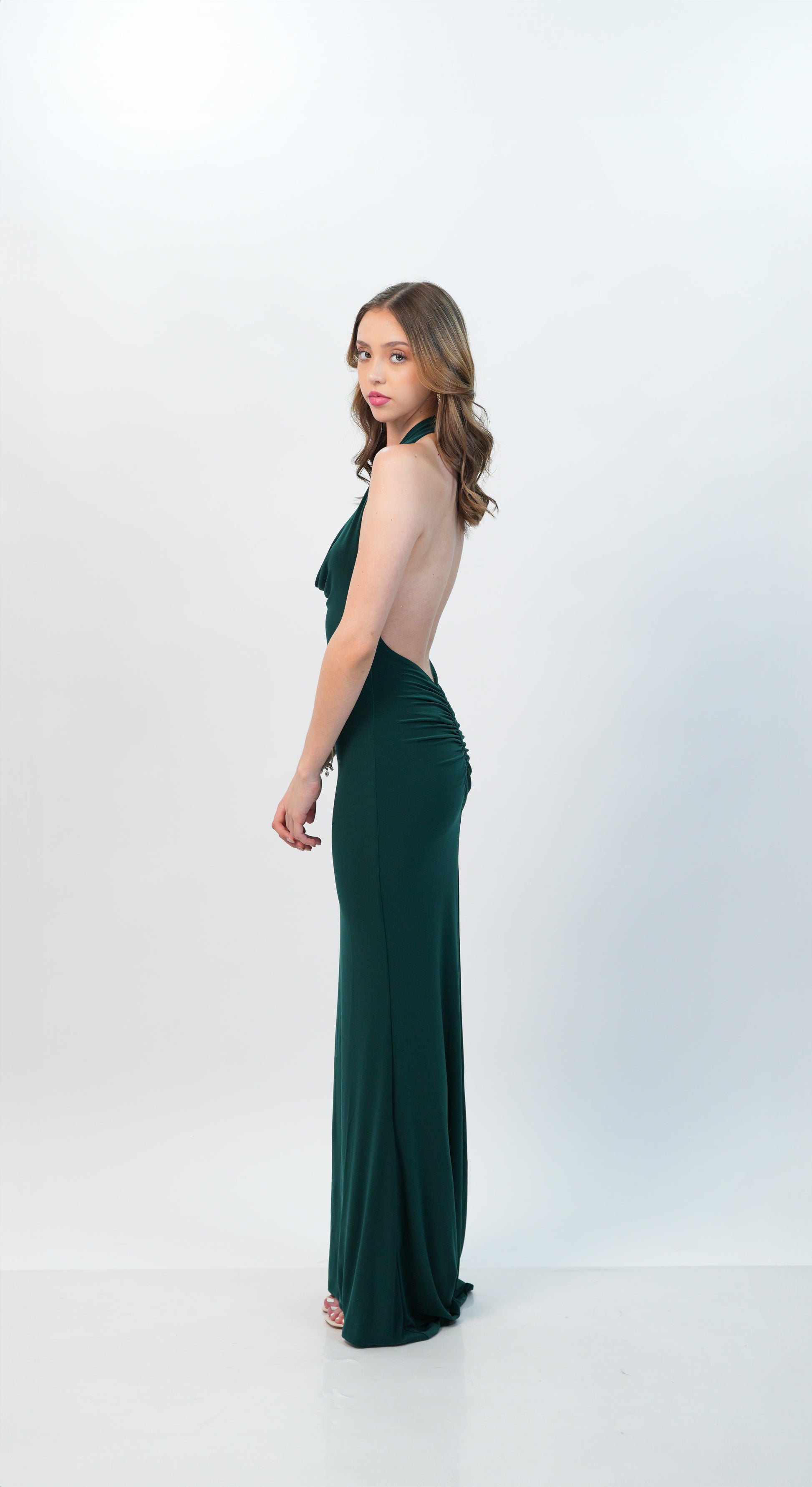 Vestido Verde Oscuro Espalda Descubierta Escote V